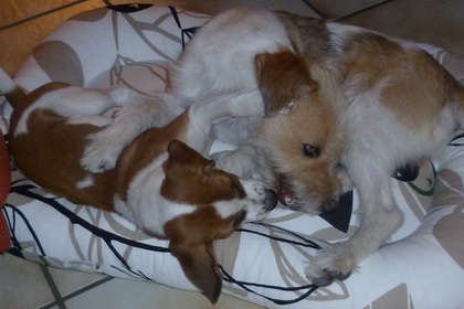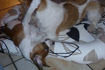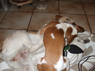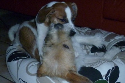 Nein!!!!! Hilfe! nicht schon heimfahren!!! Weiter im Kissen rumlungern mit Debby - das wärs gewesen... dachte sich Wurzel. Ich für meinen Teil habe das Ganze aus der Ferne betrachtet und habe mir meinen Teil gedacht... So klein war ich nie! und so benommen habe ich mich auch nie! und auf der Heimfahrt hat Wurzel geschlafen wie ein Bär. Kunststück. Ist eben doch noch ein Zwerg! |