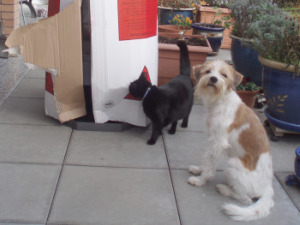 Auch ein guter Bauaufseher braucht Hilfe, Muckla ist bereit und inspiziert das Feuerdings...