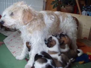 tja und dann gings rund! Claudia kam, aber ohne Timon! gemein! richtig fies! Meine schlechte Laune vergass ich aber schnell, denn ich musste mich vor Epos retten, der wollte mich beschnüffeln und das war mir gar nicht recht...Frauchen hat geschimpft mit mir und das geht ja gar nicht...war total irritiert. Bassetti war auch keine Hilfe, so habe ich mich zu Mama gelegt, da fühlte ich mich sicher.
