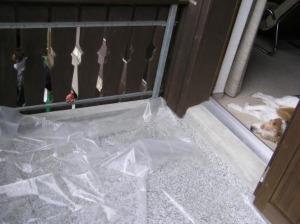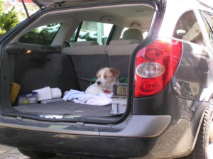 schaut mal, mich packen die einfach ins Auto, während die Fensterläden streichen... und ich bleibe brav sitzen!