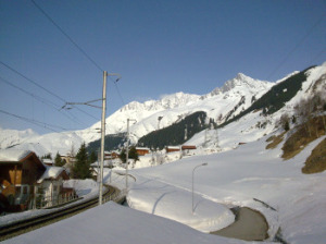 Ich hatte mir ja sowas gedacht, als hier wieder Koffer rumstanden.. als ich ausstieg, juhu! Sedrun! ich habs gleich gemerkt! ich bin als erstes mal in einen Riesenschneehaufen gehüpft, davon hatte es mehr als genug!