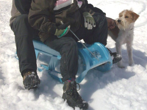 und Nelly habe ich auch gleich begrüsst, die riecht noch immer genauso gut wie letztes Jahr! und in der Wohnung habe ich gleich meinen alten Schlafplatz bezogen, derweil meine Sachen raufgetragen wurden. Ich fühle mich da wirklich wie daheim! Ich durfte auch mit zum schlitteln, wie wir hier in der Schweiz sagen. in Deutschland würde es rodeln heissen, kommt aber aufs selbe raus. Ich verstehe jedenfalls nicht so ganz, warum das Spass machen soll, auf so ein Wackelding zu sitzen. Da flitze ich lieber mit den eigenen Pfoten!