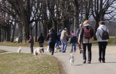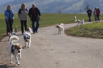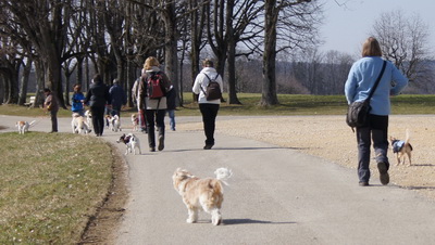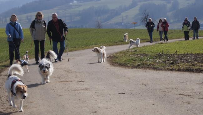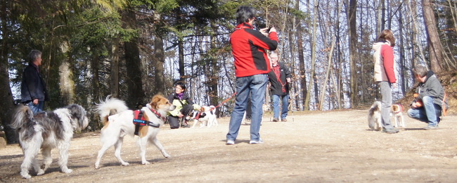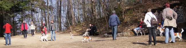 Premieren sind immer etwas Spannendes und so war die Vorfreude gross auf den ersten Baselbieter Kromispaziergang des VRK. Ein freudiges Kennenlernen gab es unter anderem auch für die Familien der 2 D-linge von Burg Lobenstein, Debby und Dusty-Dragon; hier kam es zum kleinen Familientreffen mit ihrem Vater Aljoscha und Grossvater Lux. Reiter, die unsere Gruppe passierten waren total erstaunt: „Was? So viele Hunde und alle so gut erzogen? Keiner kläfft unsere Pferde an, alle warten artig? Und dann schauen auch noch alle fast gleich aus?“ Viel zu schnell verging die Zeit unterwegs und wir erreichten wieder den Ausgangspunkt unserer Rundwanderung. Jeder Hund kriegte noch feine selbstgebackene Hunde-Lekkerli spendiert, wer das Rezept haben möchte, darf sich gerne bei mir melden, ich leite die Anfrage dann gerne nordwärts. So nahm am frühen Abend der erste Baselbieter Kromispaziergang des VRK ein stimmiges Ende, die Letzten fuhren gegen 19 Uhr heim, es war ein rundum gelungener Tag und ich freue mich auf den 25. August 2012, wenn wir uns wieder für eine gemeinsame Hunderunde treffen. Ich versende die persönlichen Einladungen rechtzeitig, wer sonst dabei sein möchte, meldet sich einfach mir, ich freue mich über jeden Kromi-Freund, der sich unserer Runde anschliesst. Ich danke allen fürs Kommen und wünsche Euch und Euren Vierbeinern eine gute Zeit: „Man sieht sich!“