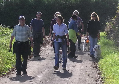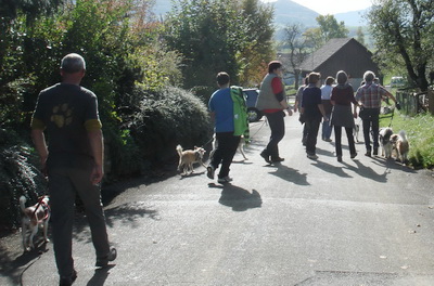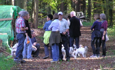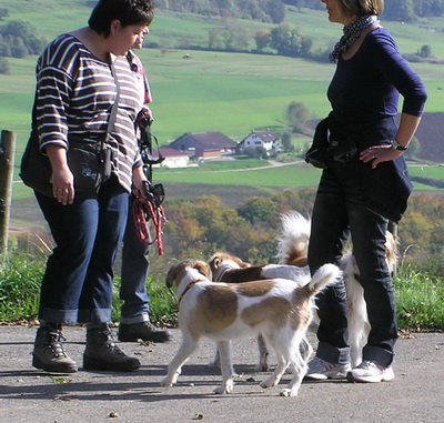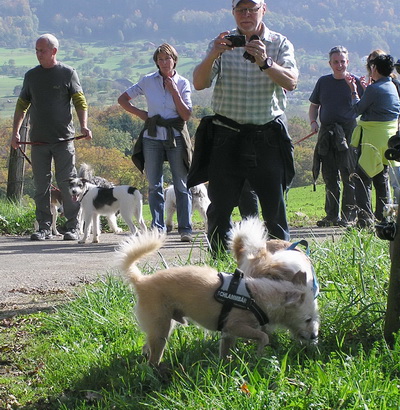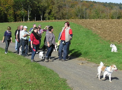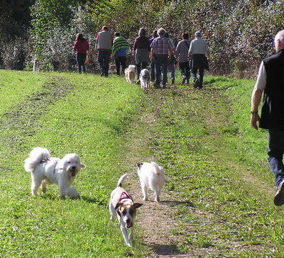 Schon Tage vor dem Kromi-Spaziergang schielt man immer zu den Wetterprognosen und wir konnten es kaum fassen: 20° und Sonnenschein werden gemeldet - und das am 20. Oktober! Wir trafen uns dieses Mal in Anwil, wo man einen schönen Rundweg auf dem Hochplateau laufen kann, auf Feldwegen, durch den Wald und am Schluss noch kurz durch's schöne Oberbaselbieter Bauerndorf. Und wieder waren wir eine kleine, gemütliche Gruppe, 10 Hunde und 15 Menschen machten sich auf den Weg... Wir hatten neue Gesichter dabei, einige waren leider verhindert oder tragen einen schweren Verlust ihres Kromis - und so war's eine bunt gemischte Kromi-Fan-Gemeinschaft, die plaudernd Anwil umrundete. Beim anschliessenden Einkehr in der "alten Laterne" in Häfelfingen konnte man sich stärken und sitzend weiter diskutieren Besonders schön war zu erleben, wie herzlich und fröhlich die Stimmung war, alle fühlten sich wohl und konnten einen schönen Tag im Baselbiet geniessen. Am frühen Abend brach man dann auf, einige hatten eine weite Heimreise in die Ostschweiz vor sich, und man verabschiedete sich mit dem Versprechen "bis gli"! Wir konnten dieses Jahr drei Kromfohrländer-Spaziergänge machen - alle drei bei bestem Wetter und mit lieben und netten Menschen und Hunden - wir sind dankbar dafür und freuen uns auf 2013, wenn der nächste Spaziergang stattfindet.