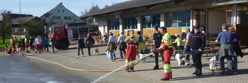 Passieren von Feuerwehr? Lärm? Wasserspritzen? kein Problem für unsere Gruppe! auch nicht für den jüngsten, auch Alois, 7 Monate alt, hat diese Aufgabe mit Bravour gelöst!