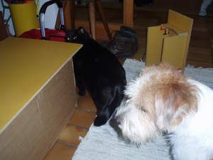 Muckla war auch ganz gespannt! wir haben das Ding dann zusammen untersucht. Findus hat sich, wie immer, ums Sofawärmen gekümmert...den kann man bei solchen Sachen echt nicht gebrauchen...