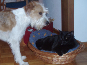 Heute war mein Glückstag! ich weiss nur nicht, wieso! Wir haben unterwegs die 3 Damen getroffen, die hübschen schwarzweissen...Das sind glaub' ich auch Hunde, ganz sicher bin ich mir aber nicht... die reagieren oft ganz anders als ich und die starren mich auch oft so an, meinen es aber nicht böse, sondern die passen dann ganz gut auf auf mich. nun, meistens möchte ich gerne spielen, aber die eine möchte, die anderen zwei nicht und bei Cailin kriege ich dann eh einen scharfen Verweis und ich passe mich da dauernd blitzschnell an... und heute? da durfte ich ihr die Ohren ausschlecken und sie hat gespielt mit mir und ich durfte überall an ihr riechen, und sie roch so gut...sie war zwar in Herrenbegleitung, den hat's aber nicht gestört, der hat mich behandelt, wie wenn ich gar nicht da wäre...ob der nicht merkt, was für charmante Konkurrenz ich wäre? Hat ihm anscheinend nicht imponiert... Jedenfalls wars ganz toll heute, Frauchen hat aber gesagt, ich solls geniessen, lang währt dies wohl nicht...ich verstehe nur Bahnhof, aber man sagt ja, man soll einen Tag um den anderen nehmen und heute, ja heute wars einfach nur toll!