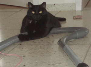 sie sollte sich wirklich mehr um den Haushalt kümmern, alles kann ich nicht selbst erledigen. Nun, sie hat es sich zu Herzen genommen und fängt mal mit dem staubsaugen an...