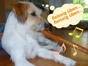 Die flötet seit Tagen immer dieselbe Melodie - irgendwie kommt mir die bekannt vor - runter und rauf, übungsresistent, aber mit viel Freude...