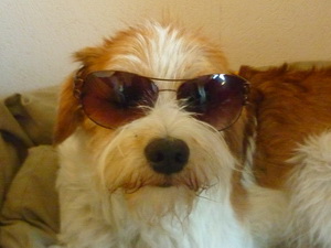 Sommer-Sonne-Pausenzeit, der Kromfohrländer von Welt geniesst das Leben und macht einen auf cool...