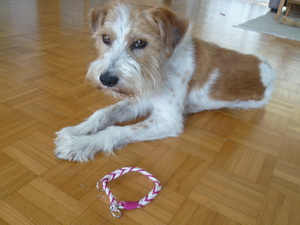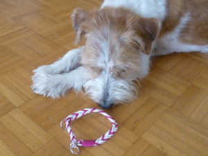Ich geb's zu, das einzige, was ich in meiner Welpenzeit und überhaupt seit ich leb, kaputt gemacht habe: das war mein Welpenhalsband.