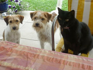 Wir sitzen nur da und schauen lieb und unschuldig und - unter uns gesagt - es wirkt.