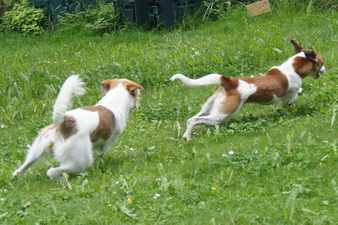 Wir haben erst einen Spaziergang gemacht und danach haben die zwei Mädels im Garten getobt, fassunglos beobachtet von meiner Wenigkeit...
