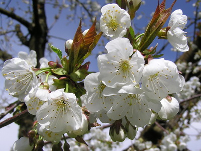 Und im Chirsgarten blühen sie jetzt, die Kirschbäume, es ist eine wahre Pracht! Alles weiss- und ausnahmsweise nicht vom Schnee, sondern von Blüten!