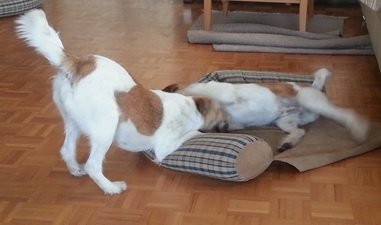 Ambra ist bei uns in den Ferien und Wurzel findet das natürlich super. Die beiden haben Spass und spielen und schmusen. Ich will aber meine Ruhe! Aber das ist beiden Wurst...