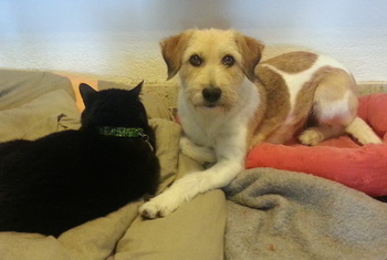 Gestern konnte ich wieder mal mit meinem guten Benehmen glänzen. Meine Familie war zum Essen aus und Wurzel und ich durften mit. Wir lagen den ganzen Abend still unterm Bank, keiner bemerkte uns. Ausser der 2jährige Stöpsel vom Nebentisch, der plötzlich schrie und unbedingt zu uns unter den Tisch wollte zum Streicheln. Durfte er... Wurzel hat sich alles lieb gefallen lassen. Mich hat der Kleine gar nicht gesehen, ich habe mich in die Ecke zurückgezogen. Fand ich sicherer... wer weiss, ob dem zu trauen ist?