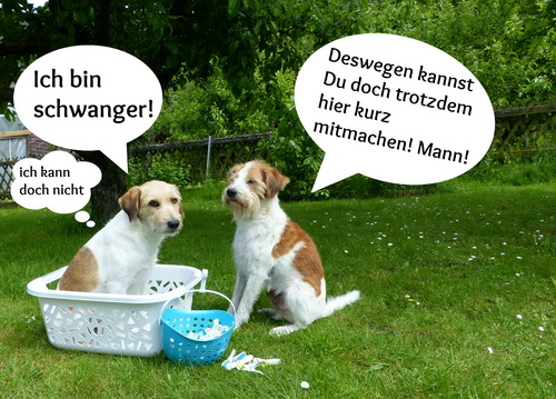 und dann wollte ich nicht mehr... der April zog ins Land und Wurzel ist doof! Sie ist dermassen schwanger, dass mit ihr nichts anzufangen ist. Sie spielt nicht mit mir und rennt nicht mit mir. Frauchen wollte Fotos machen für die VRK-Nähsachen... nicht mal das geht mit Wurzel mehr...