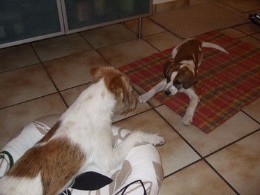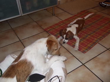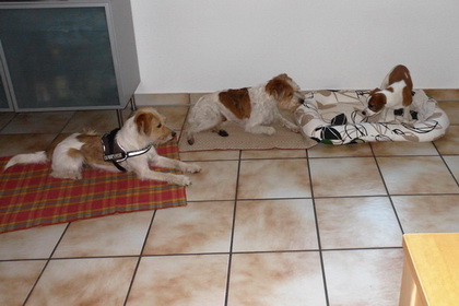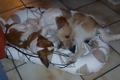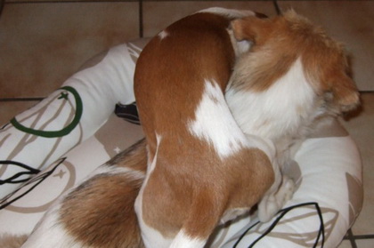 Nein!!!!! Hilfe! nicht schon heimfahren!!! Weiter im Kissen rumlungern mit Debby - das wärs gewesen... dachte sich Wurzel. Ich für meinen Teil habe das Ganze aus der Ferne betrachtet und habe mir meinen Teil gedacht... So klein war ich nie! und so benommen habe ich mich auch nie! und auf der Heimfahrt hat Wurzel geschlafen wie ein Bär. Kunststück. Ist eben doch noch ein Zwerg! |