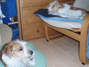 tja und dann gings rund! Claudia kam, aber ohne Timon! gemein! richtig fies! Meine schlechte Laune vergass ich aber schnell, denn ich musste mich vor Epos retten, der wollte mich beschnüffeln und das war mir gar nicht recht...Frauchen hat geschimpft mit mir und das geht ja gar nicht...war total irritiert. Bassetti war auch keine Hilfe, so habe ich mich zu Mama gelegt, da fühlte ich mich sicher.