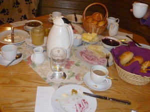 Dann warten wir artig (weil, wir habens ja versprochen) unter Tisch, während oben gemütlich gefrühstückt wird...