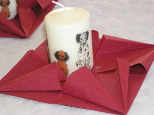 Heute sei erst der offizielle Tag des Treffens, flüsterte mir Bastia ins Ohr. Ja wie, dann war das erst das Vorgeplänkel? Also ich wäre eingedeckt mit Eindrücken, bin ganz im Stress! Gegen 10 gings plötzlich los, überall waren Kromis, Menschen, Kinder, Bobbycars, schreiende Katzen…Himmel! War ich froh, dass es nach einem langen Spaziergang aussah gegen 11 Uhr, aber stellt euch vor, die kamen alle mit! Eine richtige Wallfahrt! Mir hats sehr gefallen, ich war an der Spitze und da gings wunderbar mit den anderen Rüden. Sucre wollte der Sybille frisches Wild besorgen, das wurde gar nicht geschätzt. Die Menschen sind schon komisch… Zurück im Saal wollte ich so gerne die schöne Tischdeko bewundern…