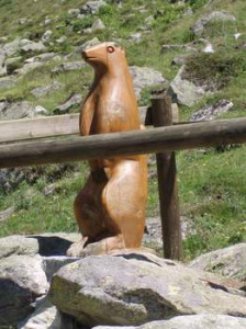 ich mache mich hier in den Bergen ja auf vieles gefasst... letzthin diese grossen schwarzen Viecher, gestern war ich mit Herrchen auf einer Männerwanderung, Ruhe war und plötzlich ein markerschütternder Pfiff! ja, ihr könnt nicht glauben, wie sehr ich mich erschrocken haben! so fest, dass ich mich sofort brav ins "Sitz" gesetzt habe! Herrchen musste fest lachen und meinte, ich sei so gut erzogen, dass ich sogar auf Murmeltierpfiffe gehorche... ;-) was ist bitte ein Murmeltier? spielt das mit Murmeln oder murmelt das vor sich hin? mir sagt ja niemand was... kurz nach diesem Stein jedenfalls steht wieder so was komisches in der Gegend rum: