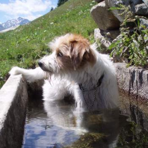 hopp und rein! Ihr hättet die Gesichter von meinen Menschen sehen sollen! ich bin ja der Hund, der vor einigen Wochen freiwillig keine Pfote ins Wasser gesetzt habe! so wie Tara... Aber jetzt ist der Kromi in den Brunnen gefallen... ;-)