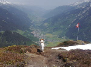 nun, vor mir lag auch was wahnsinnig Gutes, da unten bei der Fahne habe ich was gefunden und gleich gefressen, Herrchen war zu langsam. ätsch! habs aber sofort bereut, denn mir wurde soooo schlecht, noch viel schlimmer als am Montag... musste dann erbrechen und es hat soo gekratzt im Hals, habs rausgewürgt, aber ich konnte nicht mehr normal atmen, nur röcheln ging noch... meine Leute sind gewaltig erschrocken und ich konnte mich beim besten Willen nicht zusammenreissen, es ging einfach nicht mehr...laufen war auch nicht mehr drin, Herrchen hat mich dann getragen... Wir waren auf fast 2000m oben und weit und breit niemand...nach einer knappen Stunde sind wir dann zu einem Maiensäss gekommen, da haben uns ganz liebe Leute mitgenommen nach Segnas. ich war ganz brav im Auto...aber mir war so schlecht und ich war so matt, die hatten echt Angst um mich. getönt habe ich wie kurz vor dem letzten Stündchen... Frauchen hat uns dann mit unserem Auto aufgelesen in Segnas, (die war nämlich auf der Wanderung nicht dabei) ich wollte sie begrüssen, hatte aber keine Kraft dazu, habe nur geblinzelt...Den Schreck von ihr hättet ihr sehen sollen...nun, ich weiss jetzt auch, dass es in Sumvitg einen sehr netten Tierarzt gibt, der hat mich untersucht und dann mussten wir wieder so ein komisches Bildli machen, wie beim Blättler, und es war zum Glück nichts mehr im Rachen, ich habs ja gesagt, aber verstanden haben die mich nicht...habe dann nochmal eine Spritze gekriegt und dann gings mit dem Atmen besser. und laufen ging auch wieder...