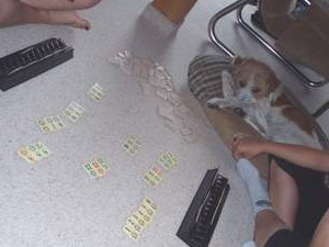 am Freitag gabs dann eine Spielerunde bei Nelly, mit Schoggicrème (für die deutschen Mitleser: Schokoladenpudding) und Rummy für die Menschen und einem ruhigen gemütlichen Platz für mich. Frauchen hat gewonnen beim Spielen, das muss auch gesagt sein.