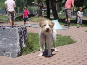 Auch zum Minigolf-Spielen durfte ich mit; eigentlich ein doofes Spiel, denn den Ball durfte ich nie haben...