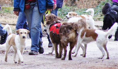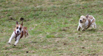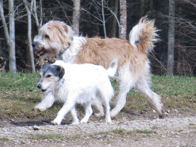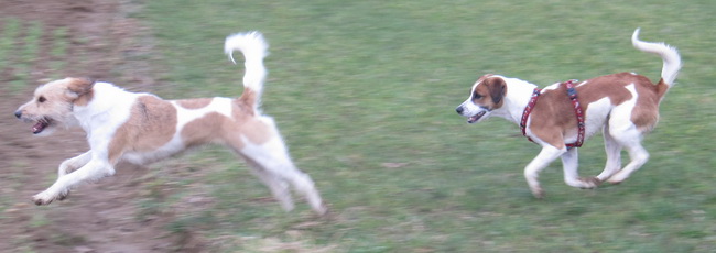 | Nur für die ersten Minuten ist Anleinen nötig, danach kann's dann losgehen mit dem freien Rennen und Toben... | |||