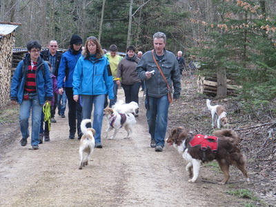 Wie immer vor einem Kromi-Anlass, man liest vermehrt die Wetterprognose… 13 Hunde waren dieses Mal dabei und insgesamt 35 Leute, darunter viele Interessierte, die sich gerne einen Eindruck von den Kromfohrländern machen möchten. Wir liefen unsere schöne Rundwanderung im Rünenberger Wald und alle Kromis, vom Jüngsten mit 5 ½ Monaten bis zum rüstigen Senior mit 14, alle wuselten durcheinander, ohne Zwischenfälle und Keifereien, alle Hunde hatten Spass und das bereitete auch die richtige Atmosphäre für die Menschen, um sich auszutauschen. Die Gespräche waren angeregt und bald schon erreichten wir nach gut 1 ½ Stunden wieder Rünenberg – und wieder passierten wir, wie im Oktober 2012 schon, eine Feuerwehr-Übung… Nach dem Spaziergang ging’s dann weiter nach Häfelfingen in unser Lokal, wo wir wieder wunderbar verköstigt wurden. Gegen 20 Uhr brachen die letzten nach einem wunderschönen Kromfohrländer-Tag auf. Ich freue mich über so einen harmonischen und schönen Tag mit wunderbaren Hunden und sehr netten und lieben Menschen und freue mich auf den nächsten Spaziergang im August.