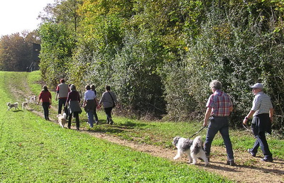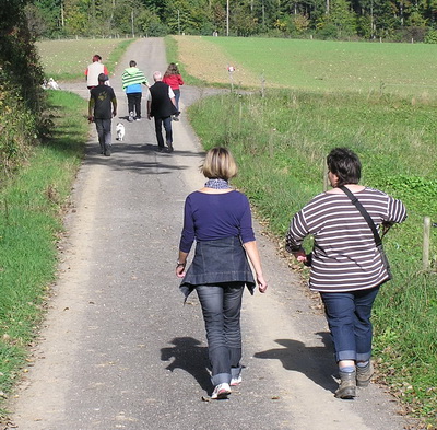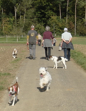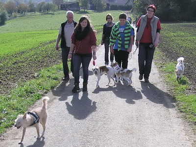 Schon Tage vor dem Kromi-Spaziergang schielt man immer zu den Wetterprognosen und wir konnten es kaum fassen: 20° und Sonnenschein werden gemeldet - und das am 20. Oktober! Wir trafen uns dieses Mal in Anwil, wo man einen schönen Rundweg auf dem Hochplateau laufen kann, auf Feldwegen, durch den Wald und am Schluss noch kurz durch's schöne Oberbaselbieter Bauerndorf. Und wieder waren wir eine kleine, gemütliche Gruppe, 10 Hunde und 15 Menschen machten sich auf den Weg... Wir hatten neue Gesichter dabei, einige waren leider verhindert oder tragen einen schweren Verlust ihres Kromis - und so war's eine bunt gemischte Kromi-Fan-Gemeinschaft, die plaudernd Anwil umrundete. Beim anschliessenden Einkehr in der "alten Laterne" in Häfelfingen konnte man sich stärken und sitzend weiter diskutieren Besonders schön war zu erleben, wie herzlich und fröhlich die Stimmung war, alle fühlten sich wohl und konnten einen schönen Tag im Baselbiet geniessen. Am frühen Abend brach man dann auf, einige hatten eine weite Heimreise in die Ostschweiz vor sich, und man verabschiedete sich mit dem Versprechen "bis gli"! Wir konnten dieses Jahr drei Kromfohrländer-Spaziergänge machen - alle drei bei bestem Wetter und mit lieben und netten Menschen und Hunden - wir sind dankbar dafür und freuen uns auf 2013, wenn der nächste Spaziergang stattfindet.