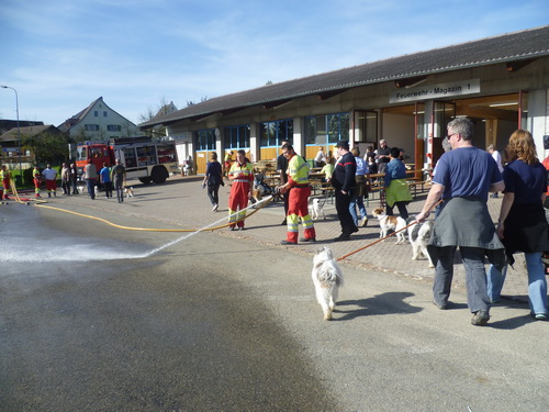 Passieren von Feuerwehr? Lärm? Wasserspritzen? kein Problem für unsere Gruppe! auch nicht für den jüngsten, auch Alois, 7 Monate alt, hat diese Aufgabe mit Bravour gelöst!