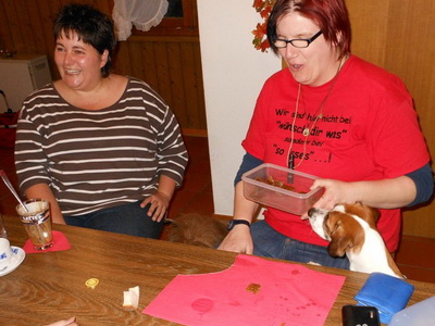 Ausklang der Runde, es werden noch die letzten selbst gebackenen Hundeleckerli verteilt! Und so ging ein wunderschöner und gemütlicher Tag zu Ende, wir alle haben die Kromi-Stunden genossen und freuen uns auf ein Wiedersehen im Frühjahr 2013! |