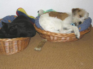 heute haben wir meine Freundin besucht. ich stehe auf Schwarhaarige! Wir könnten stundenlang den Löli machen, ich verstehe gar nicht, warum die uns immer bremsen... und he, ja, das muss ich noch erzählen, ich habe ja gemeint, der Neufundländer, den ich letztes Jahr getroffen habe, das sei der grösste Hund... aber heute, heute habe ich einen Bernhardiner getroffen und habe zwei Runden mit ihm gespurtet... ein Riesenvieh mit 91 Kilo, aber uh lieb! und farblich genau wie ich; ich will auch mal so gross und stark werden! mehr mag ich nicht mehr schreiben, ich bin sooo müde, will jetzt schlafen gehen, damit ich wieder Kräfte sammeln kann...