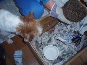 Muckla war auch ganz gespannt! wir haben das Ding dann zusammen untersucht. Findus hat sich, wie immer, ums Sofawärmen gekümmert...den kann man bei solchen Sachen echt nicht gebrauchen...