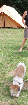das finde ich gar nicht lustig! überhaupt nicht! die Zwerge sind weg! ich suche sie überall, aber: nichts! wo sind die denn hin? heute Nachmittag bin ich mit Frauchen und Herrchen zu einer grossen grüne Wiese gefahren und gleich hats so "zwergisch" gerochen... Da waren sie, welche Freude! habe sie gleich niedergerannt und nach Tubamanier abgeküsst von oben bis unten... aber die Menschen sind schon komisch...wo schlafen die denn? kein Haus und keine gemütliche Box, wie ich sie hab. nur so komische Stoffecken...