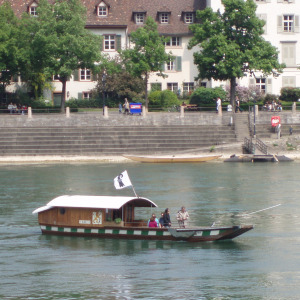 wir müssen mit diesem Wackelkahn im Hintergrund über den Rhein, aber zu zweit schaffen wir auch das!