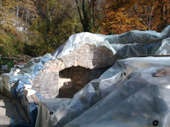 so lasse ich mirs gefallen, herrlich! Wir sind dann hinab gestiegen zur Ruine Homburg, die wird gerade saniert. Aber die Arbeiter denken schon an Weihnachten, es ist alles schon eingepackt, fehlt nur noch das Geschenkband...