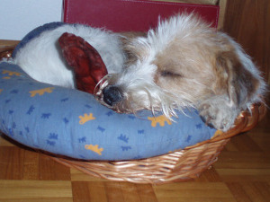 Der Weg zurück durch den Wald war auch toll, daheim war ich dann so richtig rechtschaffen müde... Keine Energie mehr zum Kauen oder Toben, ich habe mein Wochenend-Schweinsohr genommen und habs mit zu mir ins Bett gepackt. Bei Muckla weiss man nie, die klaut mir das am Ende noch und so habe ich wenigstens die Kontrolle über meine Ohren... und so lasse ich das Wochenende ausklingen, so soll's doch sein...