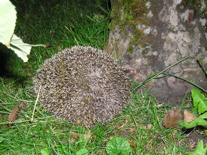 Aber: Entwarnung, jetzt im September sind herumlaufende Igel kein Problem, der Kerl hat noch genug Zeit, sich ein Fettpolster anzufressen. Und gut beieinander war er eh. Habe ihn freundlich verabschiedet und dann bin ich schnell rein in die helle Stube gerannt, zu Muckla und Findus, genug der Aufregung für heute...