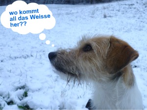 Jetzt soll sie aber erstmal in die Hundeschule heute Nachmittag, Rotznasen-Kurs, ist nötig! und ich hole mal die Bauanleitung für einen Kromi-Schnee-Hund hervor...
