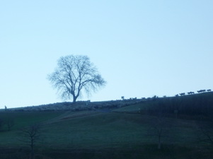 Ganz links auf dem Bild sieht man den Schäfer, der bei Wind und Wetter mit seinen Tieren über die Felder wandert...