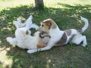 Er ist bestimmt viel braver als Wurzel, denn Wolle geht 2x in der Woche in die Hundeschule und Wurzel schaffts nur 1x, dabei hätte sie wahrscheinlich Knigge-Unterricht viel nötiger als Wolle! Er war schon als Baby so brav.