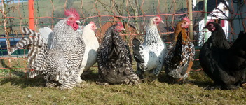 Wenn Frauchen Gemüse-Rüstabfälle für die Hühner ins Gehege wirft, muss sie jetzt gut zielen... alles, was zu nah am Zaun liegt, holt sich die kleine Wutz...