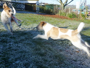 Der anfängliche Widerstand (der Hund kommt nicht aufs Sofa) ist sehr schnell zerbröselt, so soll's auch sein...