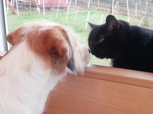 Wobei wir heute einen schönen Spaziergang gemacht haben mit Kathrin und ihren schwarzweissen Hunden... jetzt liegen Wurzel und ich vor dem Ofen und warten auf bessere Zeiten...