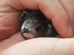 Acht kleine Mauersegler, hier "Spyren" genannt, wohnen derzeit bei uns...