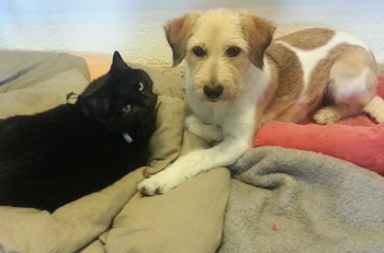 Gestern konnte ich wieder mal mit meinem guten Benehmen glänzen. Meine Familie war zum Essen aus und Wurzel und ich durften mit. Wir lagen den ganzen Abend still unterm Bank, keiner bemerkte uns. Ausser der 2jährige Stöpsel vom Nebentisch, der plötzlich schrie und unbedingt zu uns unter den Tisch wollte zum Streicheln. Durfte er... Wurzel hat sich alles lieb gefallen lassen. Mich hat der Kleine gar nicht gesehen, ich habe mich in die Ecke zurückgezogen. Fand ich sicherer... wer weiss, ob dem zu trauen ist?